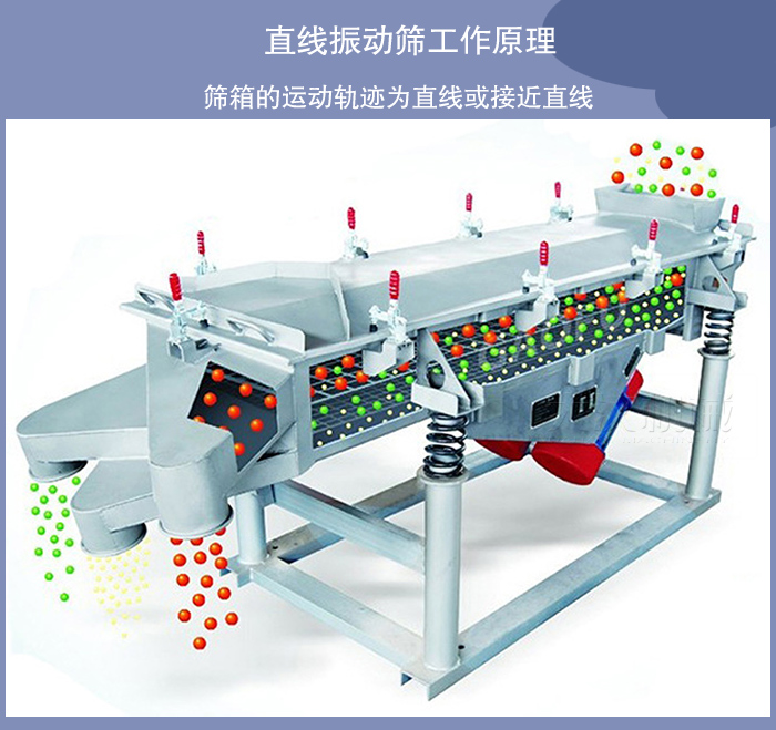 直線振動篩篩箱的運動軌跡為直線或接近直線,它有兩個軸,所以又稱雙軸振動篩。直線振動篩水平或傾斜安裝,這類振動篩結構緊湊,運行平穩,被廣泛用于各類物料的脫水、脫泥、脫介,也用于中、細粒度物料的干式和濕式分級作業。我廠生產的直線振動篩種HZSF型號就是直線振動篩代表性的產品。
