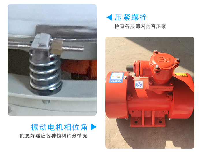 ⑶開機前,應先檢查各壓緊螺栓的緊固程度,及各料口的位置是否與接料器對正,并觀察振動電機是否能正常轉動及彈簧受力有無阻礙,檢查各層篩網是否壓緊。