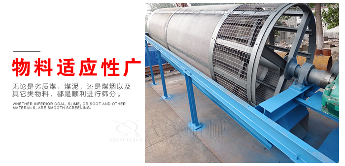 回轉(zhuǎn)篩廣泛應(yīng)用于各類物料篩分,無論是劣質(zhì)煤、煤泥,還是煤煙以及其它類物料,都是順利進行篩分。